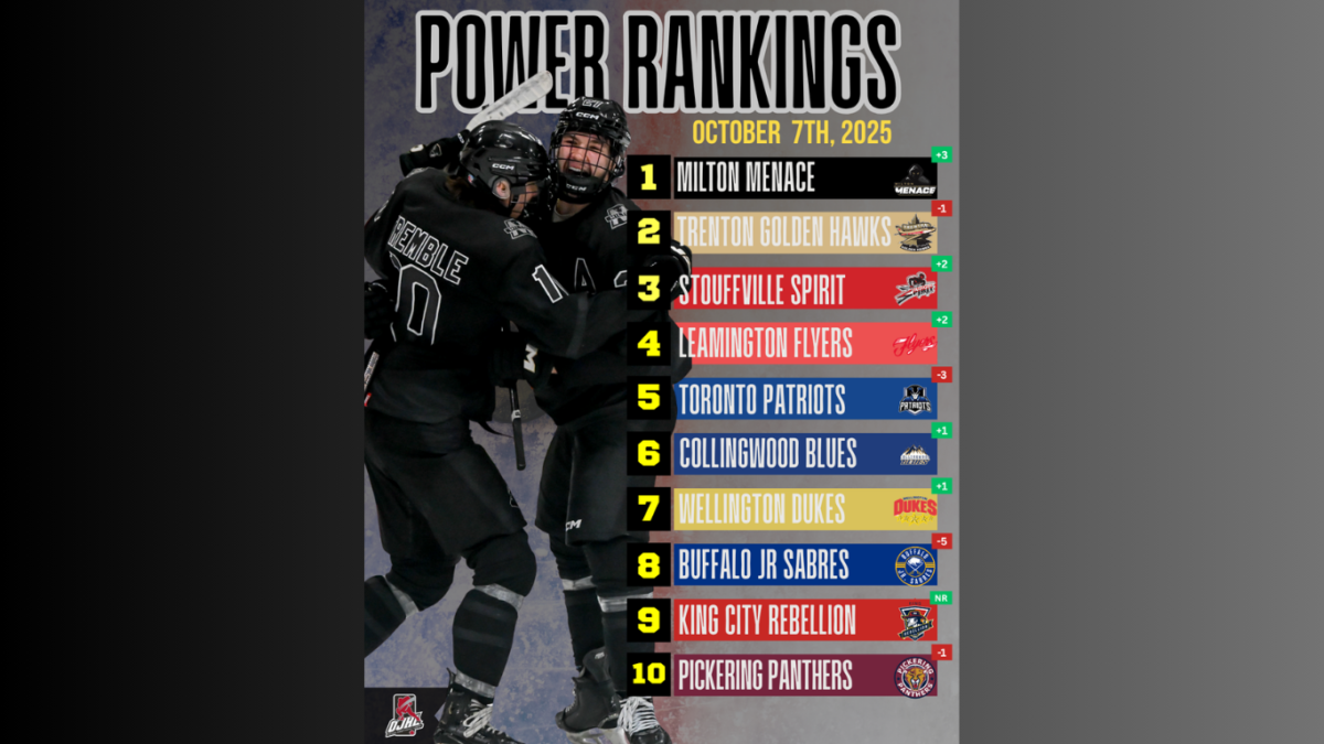The Milton Menace are the top-ranked team in the Ontario Junior Hockey League, according to the OJHL Power Rankings released today.