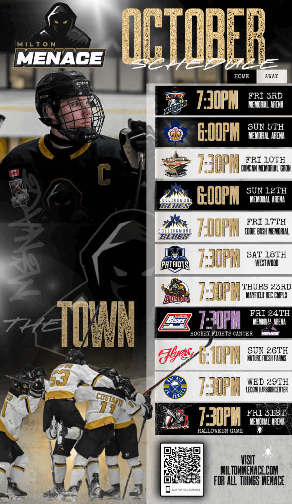 Local juniors tied for first in OJHL’s West Conference MiltonToday Staff Oct 6, 2025 9:30am The Menace’s undefeated season continued at Memorial Arena Sunday evening – with a little suspense thrown into the mix. Owen King’s second goal of the season with 1:11 remaining in regulation and Carter Froggett’s four overtime saves staved off their […]