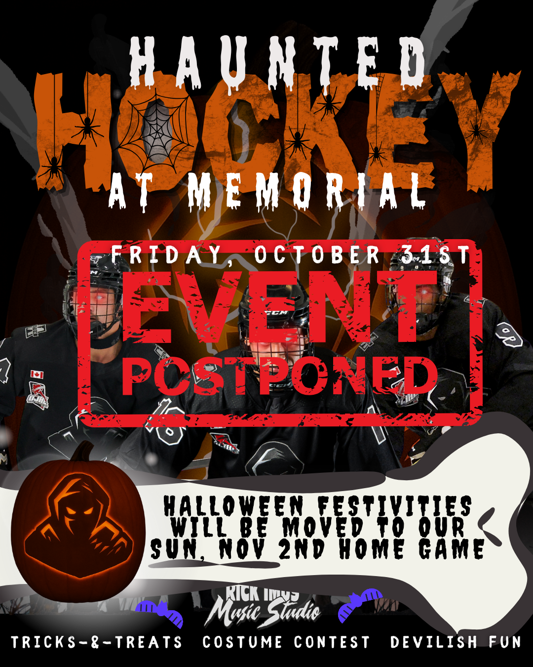 🚨ATTENTION MENACE FANS🚨 OUR GAME TOMORROW NIGHT HAS BEEN POSTPONED This game has been rescheduled to January 21st at 1:30 🎃 DON’T FEAR, JOIN US ON SUNDAY, NOV 2nd FOR A HALLOWEEN FUN FILLED NIGHT WITH COSTUMES AND CANDY👻